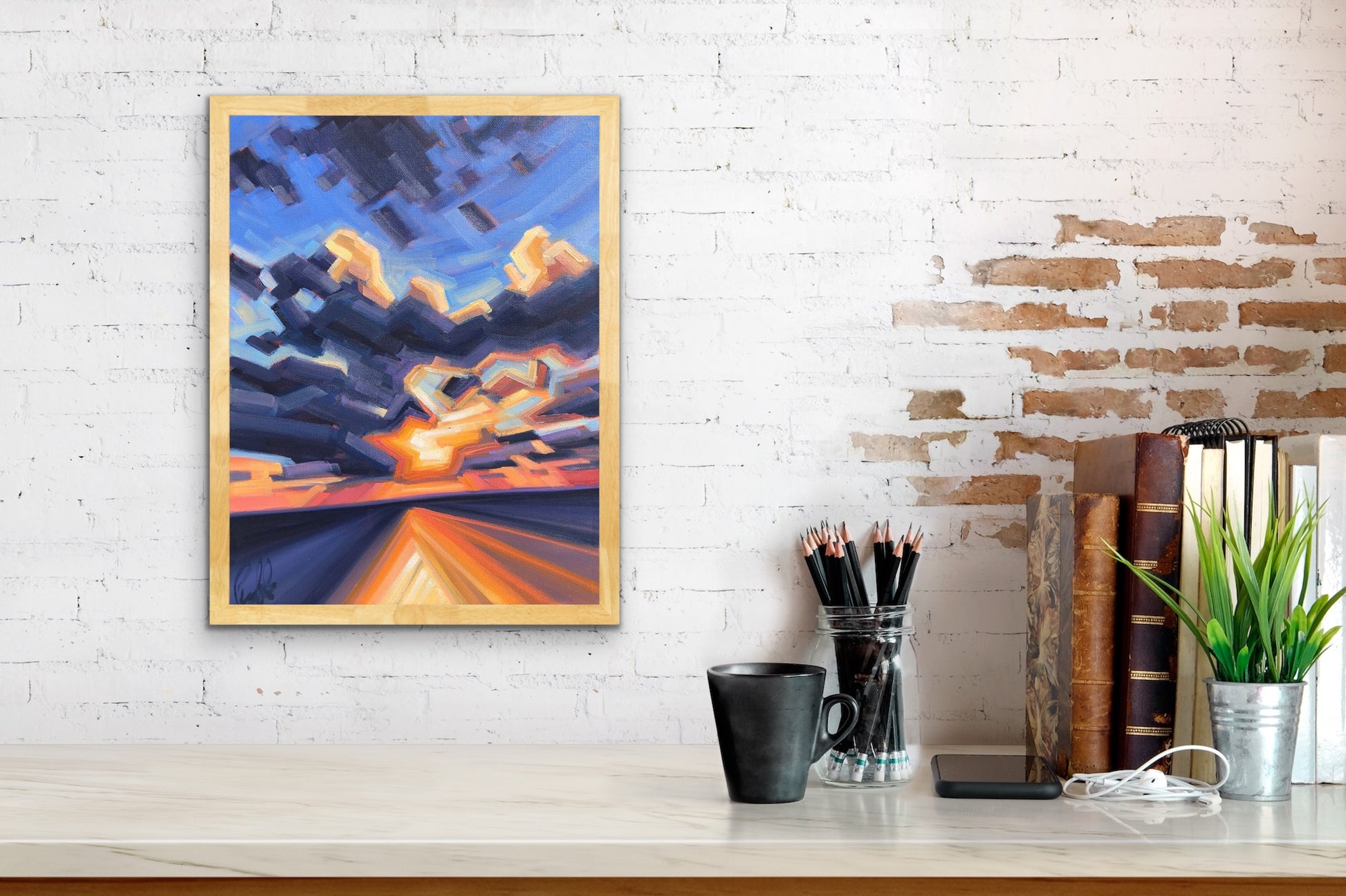 Second, I am constantly investigating new ways to represent clouds in my art. Just as clouds are always shifting and changing in the sky, my stylistic approach to representing and communicating their essence is always evolving and unfolding. Recently, I have been working to break apart their soft billowy, featherlike qualities and instead render their various layers and qualities as rectangular strokes of value and color. I am striving to give the impression of the layers and, perhaps even more importantly, the feeling that the strokes of paint create. By using individual marks, as just the suggestion of clouds, there is a looseness and a freedom that allows us to feel their impermanence.