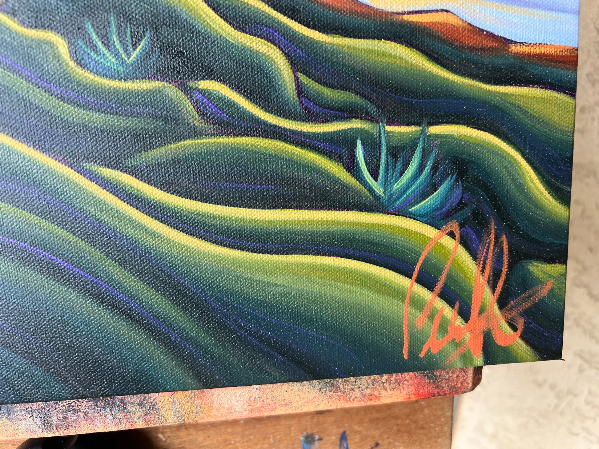 This painting is inspired by the EB Scripps Overlook, a short and easy trail that rewards visitors with sweeping panoramas. It’s a perfect spot to take in the vastness of the landscape, orient yourself to the reserve’s other trails, and simply breathe in the beauty of nature. With benches thoughtfully placed for resting and reflection, it’s an ideal place to pause, soak in the moment, and be present.