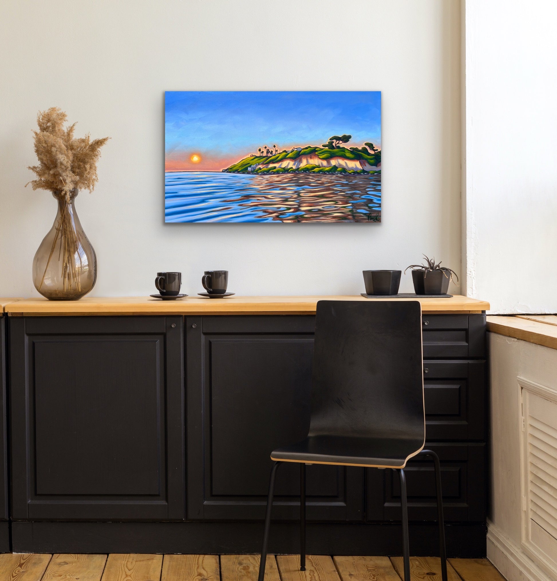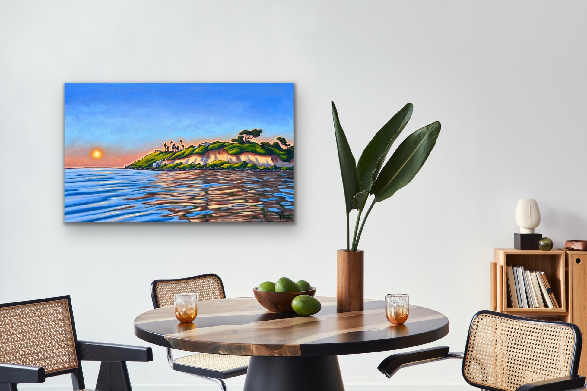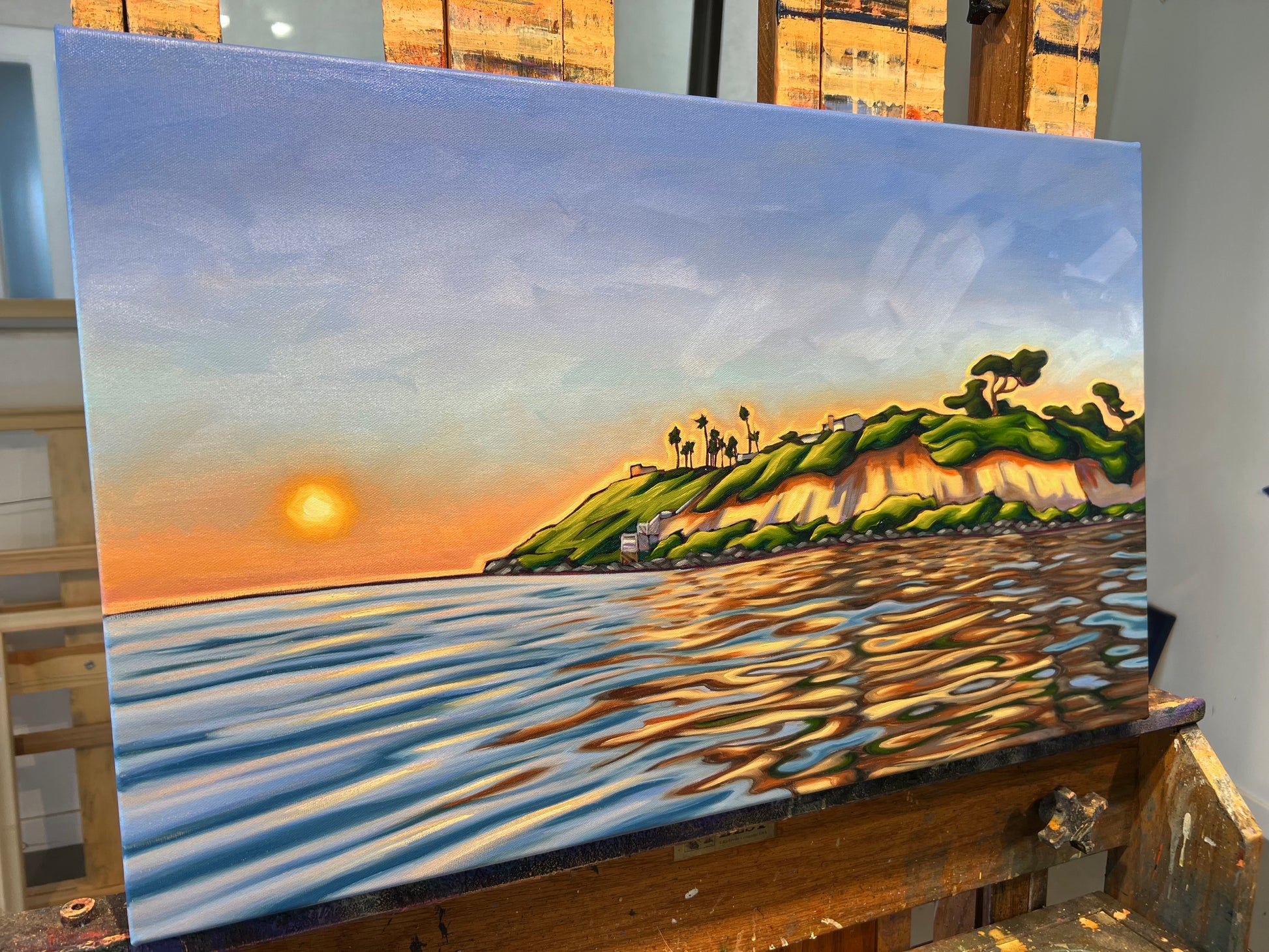 Inspired by a beautiful evening on the water at Swami's in Encinitas. The sunlight illuminates the bluff just below SRF, reflecting the luminous colors on the water's surface below. There is something so magical about this spot.